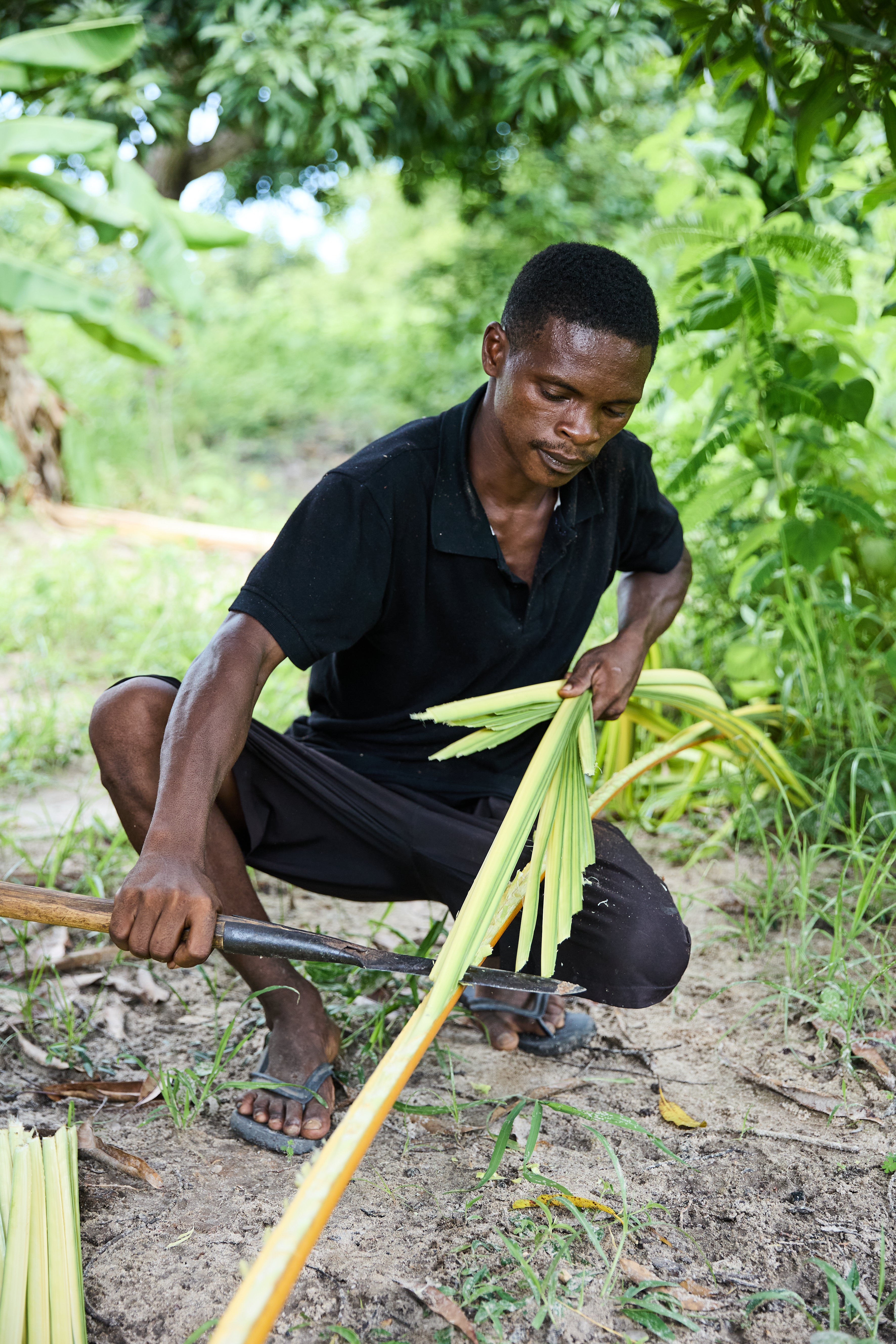 C’est lorsqu’ils sont sélectionnés parmi la végétation la plus reculée de l’île, dont l’accès nécessite parfois des heures de marche, à dos de charrette, ou de pirogue, que les arbres desquels est extrait le raphia naturel donnent les meilleures fibres. Un trésor, disions-nous…