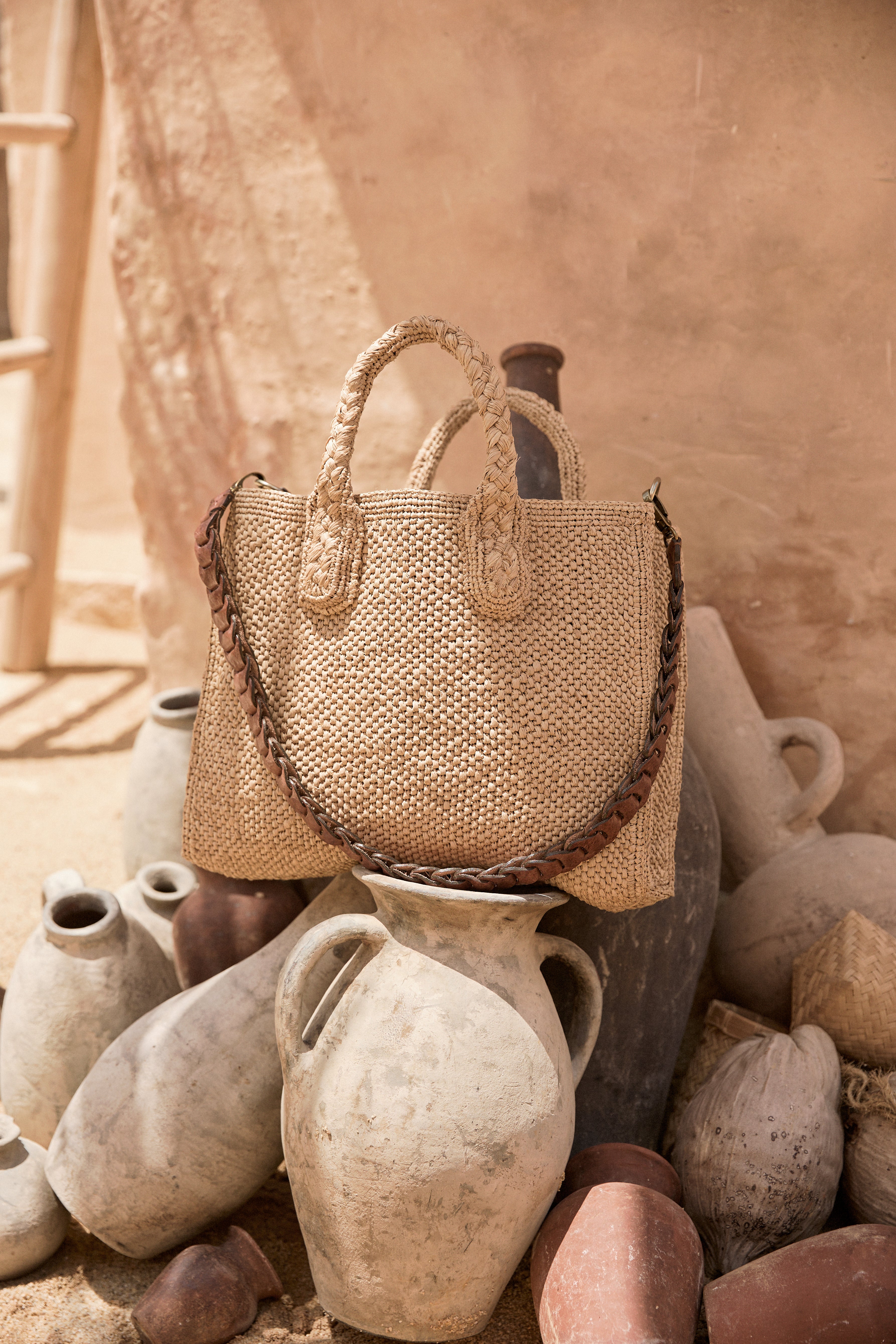 - Matières : 100% en Raphia naturel, ce sac doublé en coton bio allie souplesse et solidité d’une matière naturelle et durable. La bandoulière amovible est en cuir de zébu tannée selon un procédé végétal.